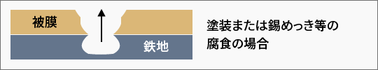 錫めっき、ニッケル、クローム等の金属被膜または塗装による被膜は、単に大気を遮閉する働きをするだけで、被膜が破れると鉄地の腐食を促進する欠点があります。
